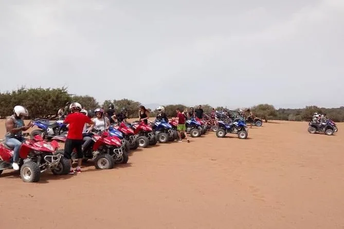 Your ride includes all safety gear (helmet & glasses), guided quad biking for about 1.5 hours across varied terrain, plus a homemade Berber-style breakfast with mint tea and local treats. Transport is air-conditioned if needed—and all fees are covered.