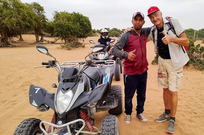 Your day includes hotel pickup and drop-off by air-conditioned minibus from Agadir, all safety gear like helmets and goggles, full guidance from local instructors for both quad biking and sandboarding sessions near Tifnit village, plus Moroccan mint tea served during your break before heading back to town.