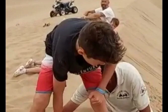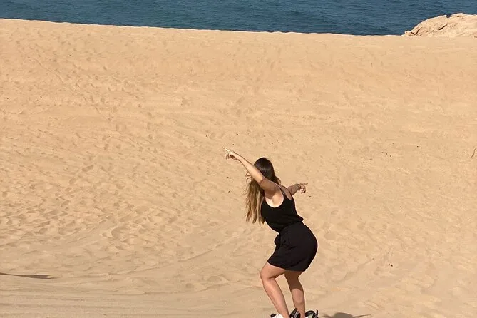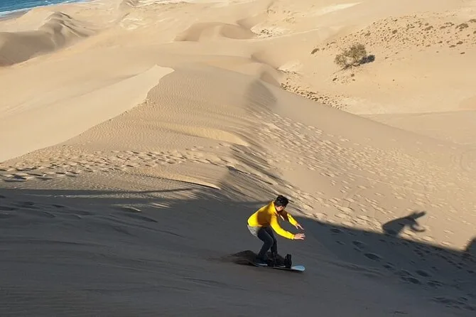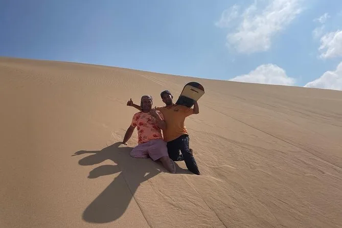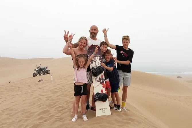 The full experience lasts about 3 hours: 2 hours of quad biking plus 1 hour of sandboarding instruction.