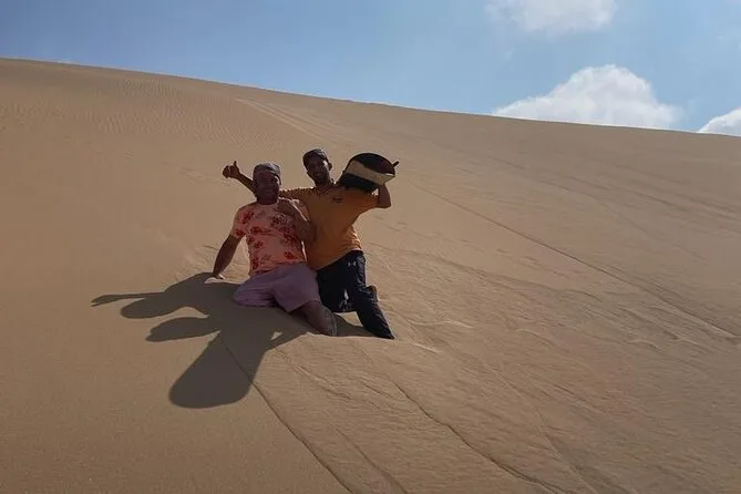 Sandboarding was next — which is basically surfing but on land and with way less grace (at least for me). Our instructor, Fatima, showed us how to wax the boards and angle our feet. She laughed when I wiped out spectacularly on my first try; apparently that’s part of the fun. The sand gets everywhere — shoes, hair, teeth if you’re not careful — but there’s something weirdly satisfying about sliding down those golden slopes with nothing but wind and your own momentum. We took a break halfway through for mint tea poured from a battered silver pot; sweet and hot enough to cut through all that grit.