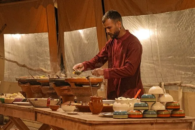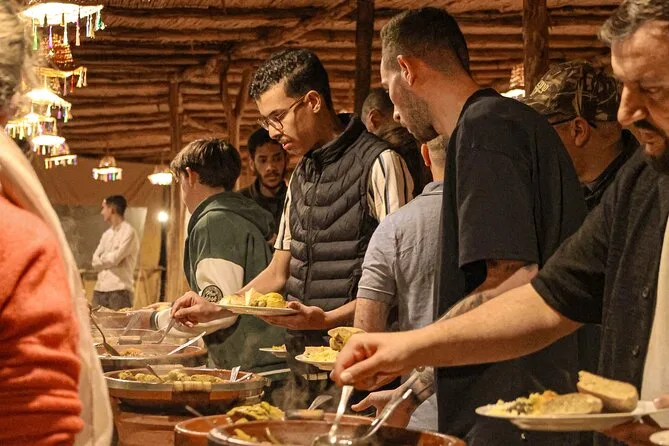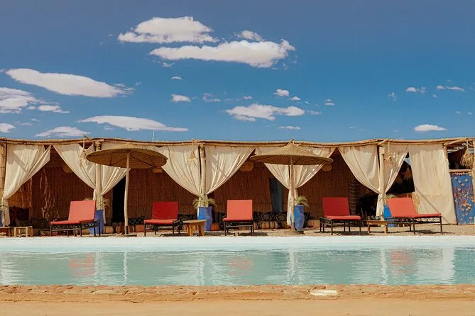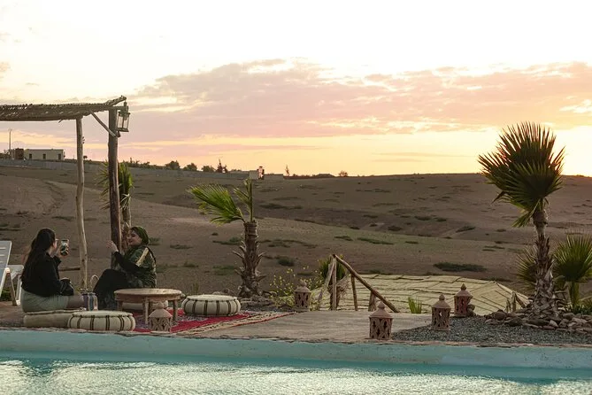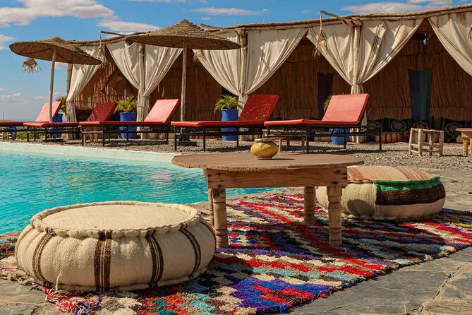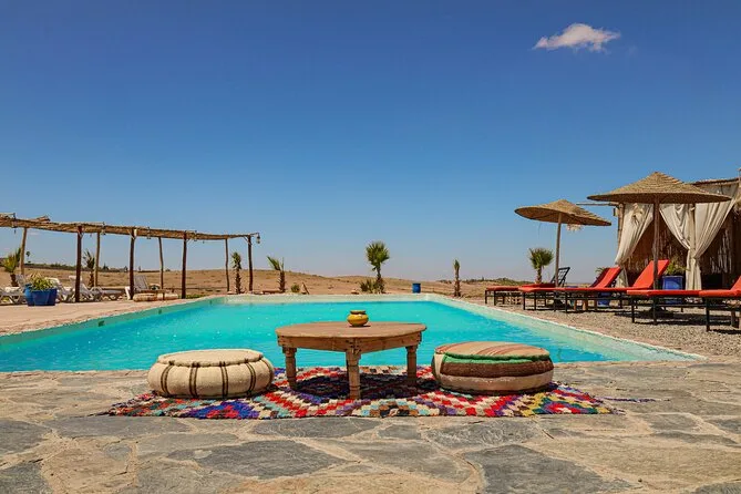 You’ll swap Marrakech’s chaos for rocky Agafay trails by quad bike, then slow down for a sunset camel ride across golden hills—with time for photos and quiet moments. Back at camp, cool off in the pool before a three-course Moroccan dinner under lanterns as Berber musicians play by firelight. It’s an evening where you’ll feel both welcome and far from home—in a good way.
