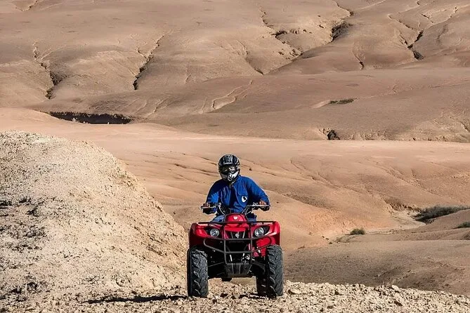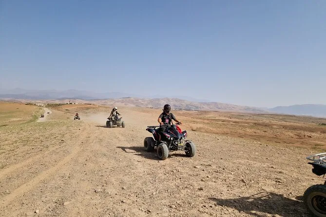 The quad ride covers desert trails with views of the Atlas Mountains; exact duration may vary but is a main part of your evening experience.