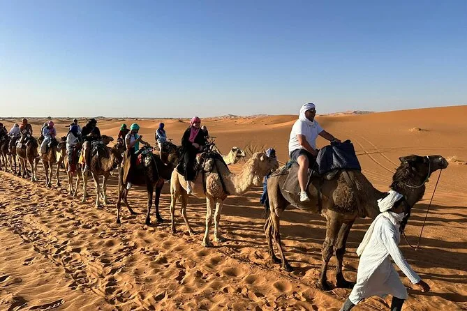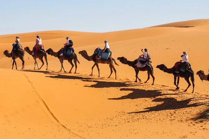 Your journey includes hotel pickup in Casablanca, private transport with a professional driver (fuel covered), four nights’ accommodation ranging from city riads to a Berber desert camp, camel rides at sunset and sunrise in Merzouga (one camel per person), sandboarding fun on the dunes, plus dinner and breakfast at select hotels along the way before returning you to your riad in Marrakech.