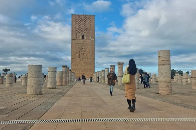 The tour includes Hassan Tower, Kasbah of the Udayas, Chellah fortress, Royal Palace, and the Corniche.