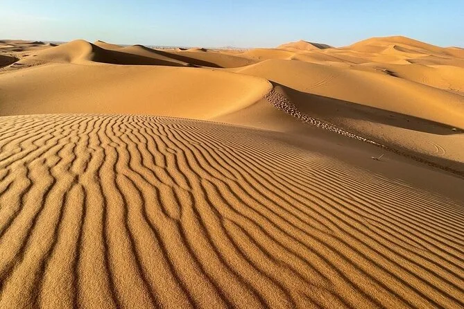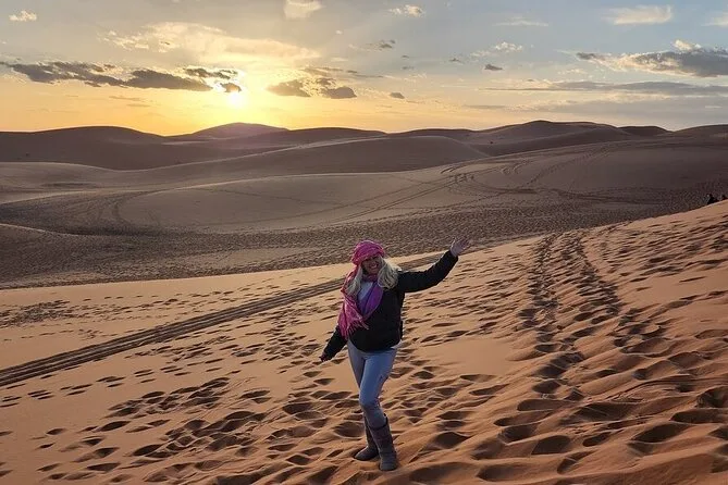 Your journey includes private hotel pickup in Fes, comfortable air-conditioned transport across Morocco’s heartland with your local guide at the wheel, camel trekking into Erg Chebbi dunes (one camel per person), overnight stays—a nomad tent under Saharan stars plus a boutique guesthouse—and traditional meals along the way before drop-off at your riad or hotel in Marrakech.