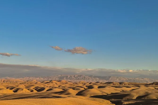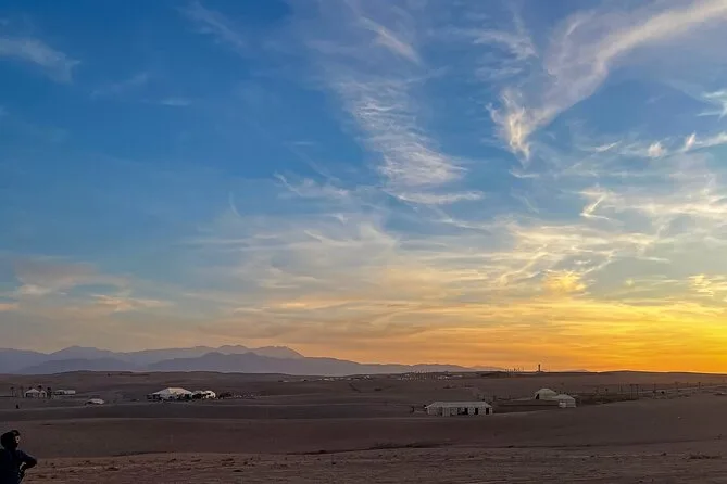 You’ll leave Marrakech behind for an afternoon of quad biking through Agafay’s stony desert, then climb onto a dromedary as sunset falls over endless rocks. Later you’ll gather under canvas for a Moroccan dinner with live music and fire dancers swirling right by your table—the kind of night that lingers long after you’re back in town.