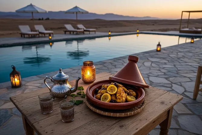 Dinner includes traditional Moroccan dishes like couscous and tagine served as a three-course meal.