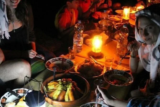 You’ll enjoy live Berber music around a campfire plus a fire show after sunset.