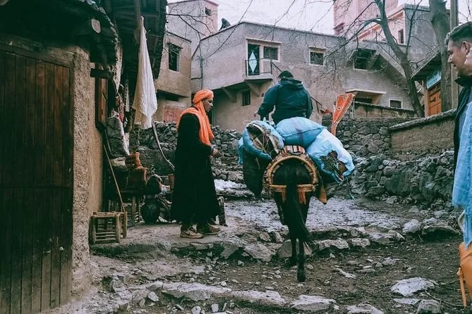 Your day includes hotel pickup from Marrakech (or nearest accessible point), all entry fees and taxes, breakfast en route, mint tea and bottled water during stops, a guided walk through Imlil Valley’s villages to waterfalls, plus a traditional Berber lunch cooked by your host family before returning to Marrakech by late afternoon.