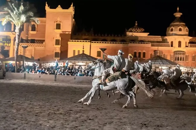 You’ll step into Marrakech’s vibrant night scene with hotel pickup straight to Chez Ali for a traditional Moroccan feast inside Berber tents. Expect live music, dancers weaving between tables, and an open-air Fantasia show with horses and fireworks — all wrapped up in warm local hospitality you’ll remember long after the trip.