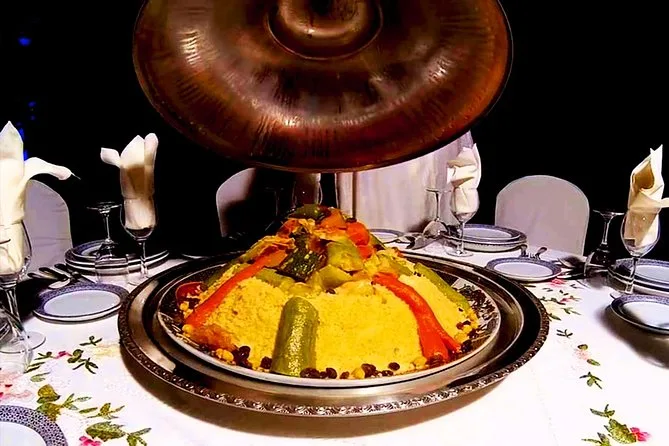 You’ll get a full Moroccan dinner with dishes like tagine, couscous, pastries, and mint tea.