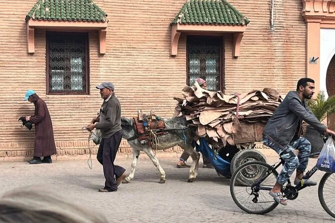 Your day includes a licensed local guide who shares stories as you walk slowly through Marrakech’s Medina alleys and souks, bottled water to keep you cool, visits inside historic bakeries and caravan inns, plus plenty of time for questions or photos before finishing back at Jamaa El Fna square.