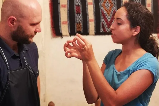 Your day includes bottled water throughout the experience, ingredient shopping at neighborhood markets (for morning sessions), hands-on cooking instruction from Najla in her Marrakech home, plus homemade Moroccan tea and pastries shared around her kitchen table before enjoying your own meal together.
