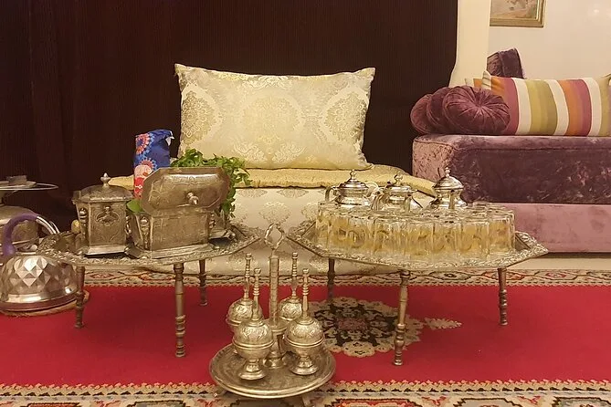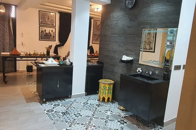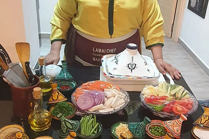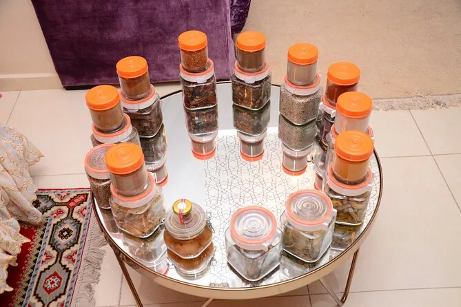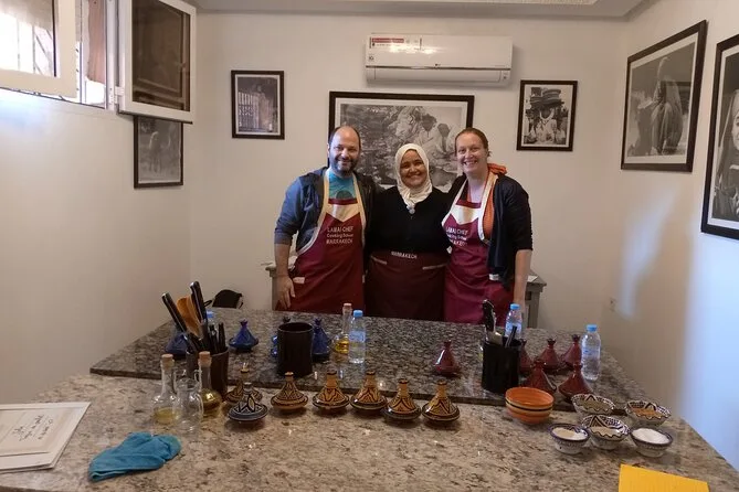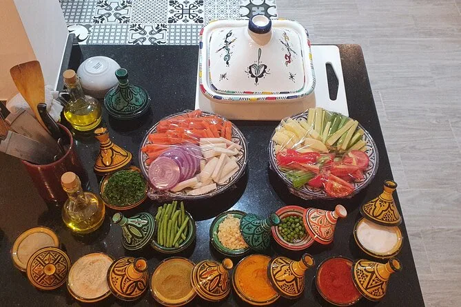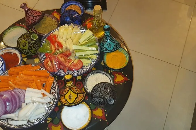 Your day includes pickup by air-conditioned vehicle from Marrakech, bottled water throughout the workshop, all ingredients for hands-on cooking of classic Moroccan dishes like tagine and salads (with both lunch or dinner served), plus coffee or mint tea shared during your introduction to local spices before returning home with new recipes — and maybe flour on your shirt.