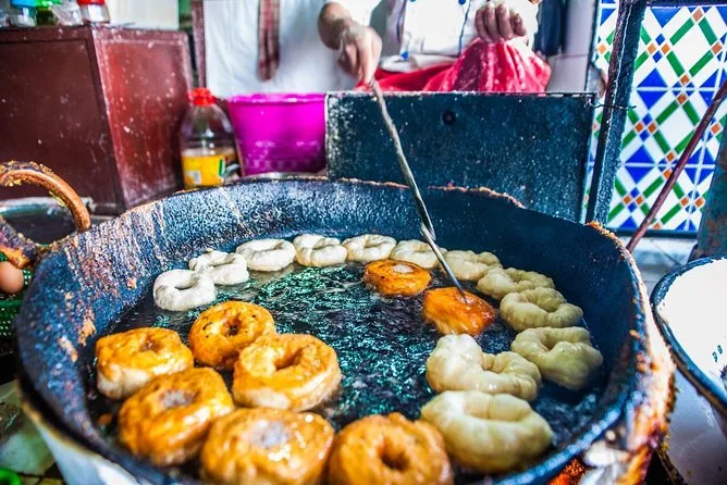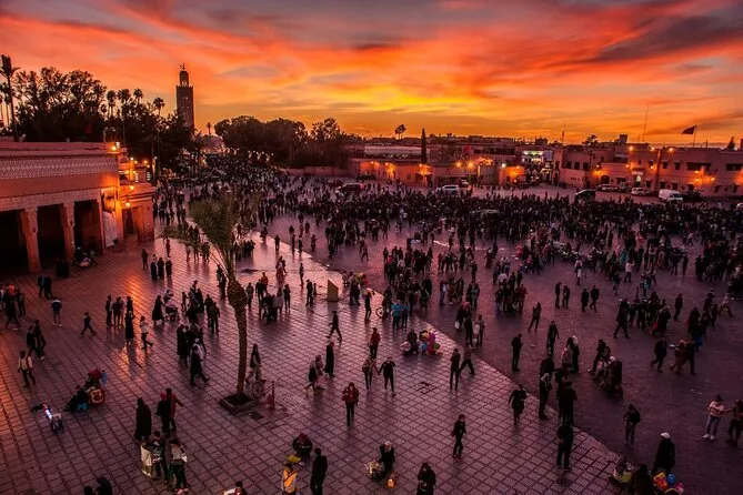 You’ll sample street foods like ghoulal (snail soup), preserved meats including cow’s hoof and sheep’s head, olives, nuts, dried fruits, Moroccan pastries, and enjoy a traditional dinner in Djemaa El-Fna square.