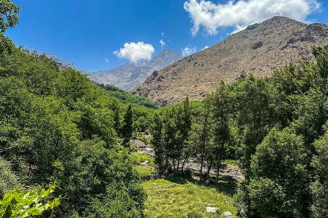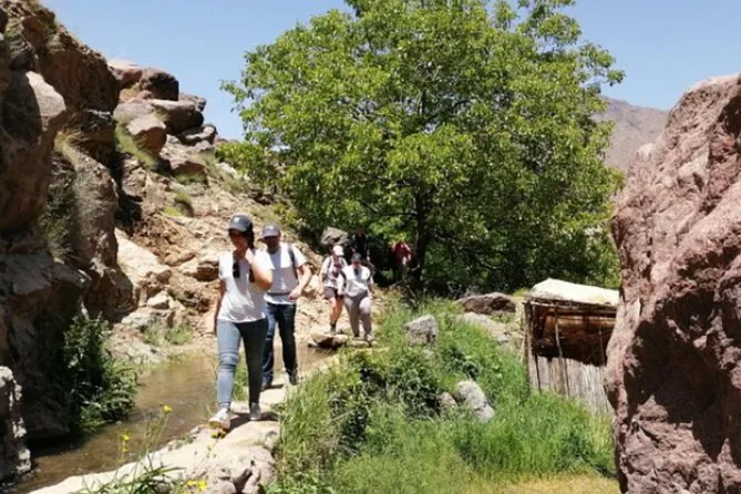 Your day includes hotel pickup (or meeting point if staying inside the Medina), transport in an air-conditioned vehicle with your local guide Youssef or his team, bottled water along the way, a short camel ride near Ourika Valley with mint tea served in a Berber tent, stops at several mountain villages including an argan oil cooperative run by women, an easy hike to waterfalls in Imlil Valley (with plenty of photo stops), plus lunch prepared by your guide’s family before heading back to Marrakech around sunset.