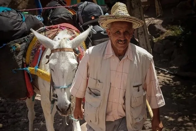 Your day includes hotel pickup and drop-off in Marrakech by air-conditioned vehicle with an English-, French-, or Spanish-speaking guide; bottled water; breakfast at an argan oil cooperative; coffee or tea; time exploring Imlil Valley; and a traditional Moroccan lunch in a Berber home before returning in the late afternoon.