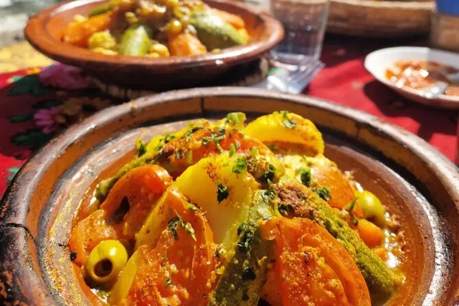 The lunch typically includes salads and couscous which are suitable for vegetarians; you can ask your guide about specific dietary needs.