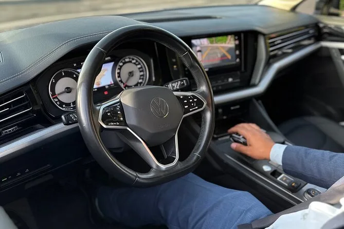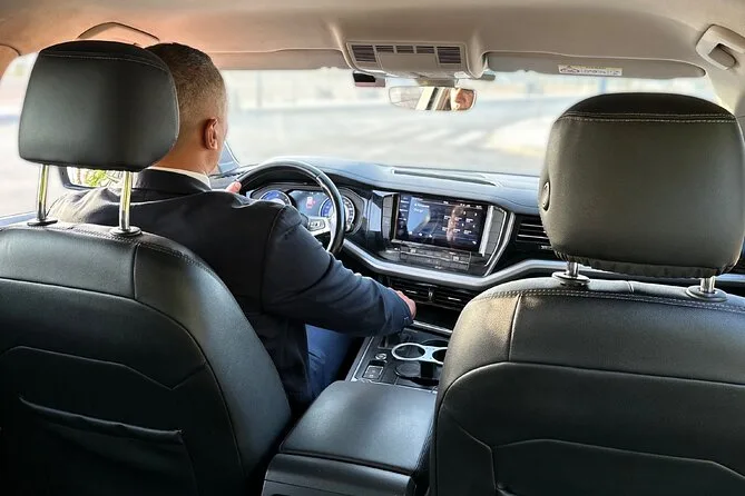 We were already standing in the lobby in Marrakech, bags packed but still a little sleepy — our driver was right there with a sign and this easy smile. He greeted us in French first, then switched to English when he saw me hesitate (I always freeze up in French). I remember the cool air hitting my face as we stepped into the van; it was such a relief after that sticky morning heat. The seats felt almost new, and there were bottles of water waiting for us. My partner immediately asked for the WiFi password — priorities.