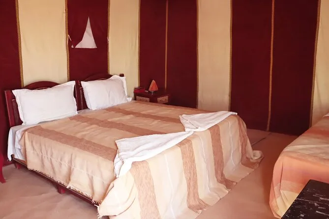 You’ll stay one night at Kasbah Dades Amazigh or similar guesthouse and one night in a private tent at Erg Chebbi desert camp (shared bathroom).