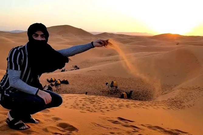 The drive from Erg Chebbi (Merzouga) to Fez takes most of the day; arrival is usually around 8 pm.