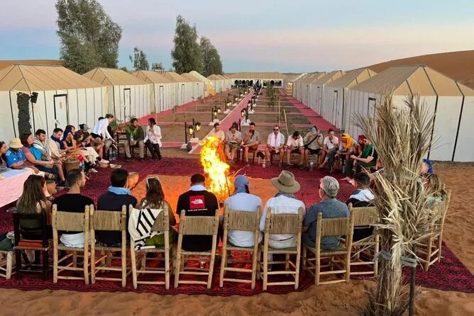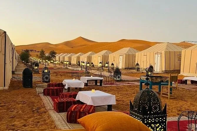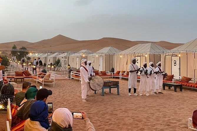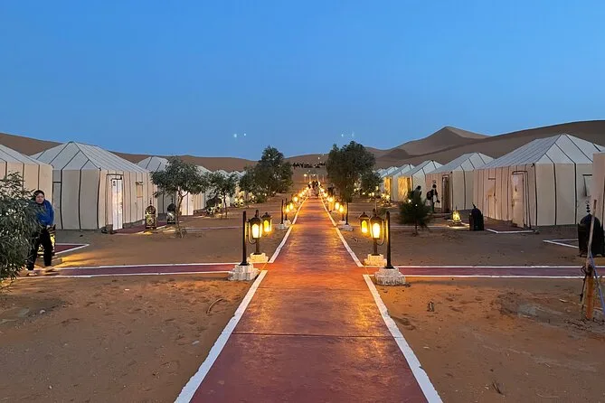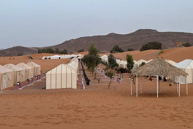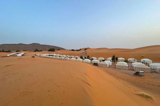 The first night is spent in a hotel in Dades Valley; the second night is in a Berber tented camp near Merzouga.