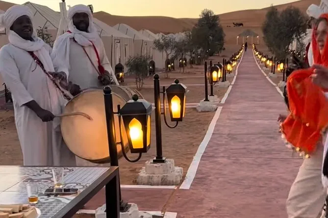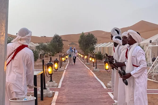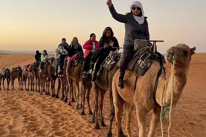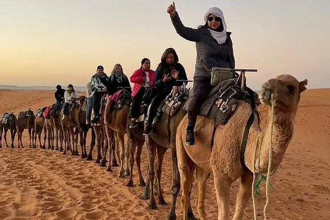 Yes, there’s a sunset camel trek on arrival at Erg Chebbi dunes plus an early morning return ride.