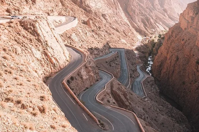 The tour lasts three days with two overnight stays—one in Tinghir or Dades Valley and one in a desert camp near Merzouga.