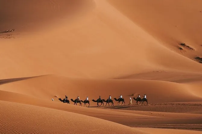 You’ll cross Morocco’s Atlas Mountains by minibus, wander ancient kasbahs like Ait Ben Haddou, ride camels through Merzouga dunes at sunset, and share stories around a desert campfire under endless stars. With local guides leading the way and all transport included, expect real connection—both with people and place—that lingers long after you return.
