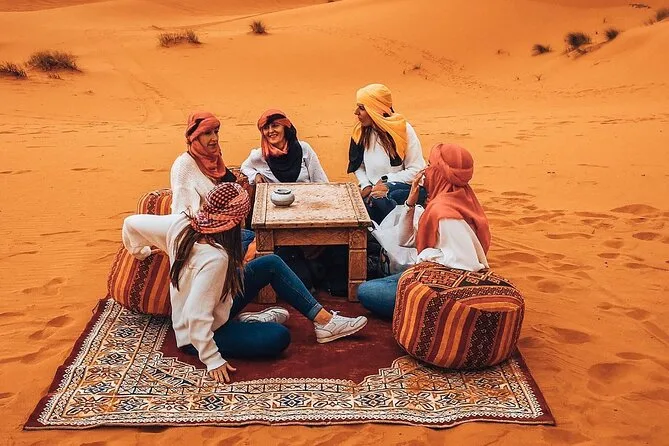 Dinners are included at your accommodations—expect Moroccan cuisine like tagine at both hotel/riad and desert camp stays.