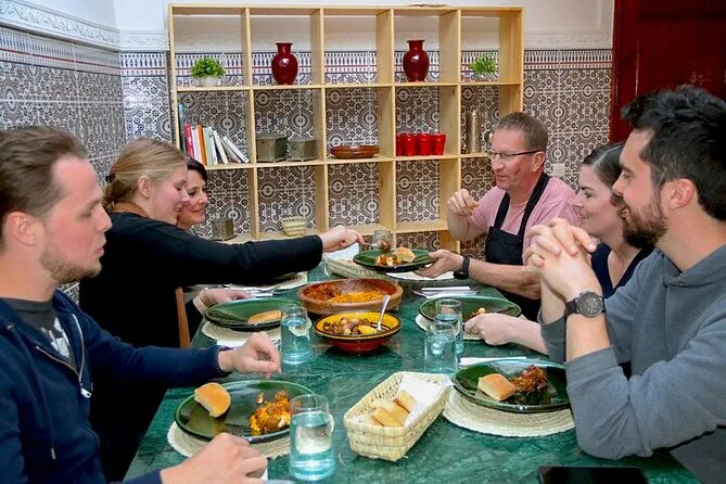 Your day includes bottled water on arrival, welcome mint tea shared with your hosts before cooking begins, all ingredients sourced fresh from Marrakesh’s local market (with guidance from Chef Hassan), use of an air-conditioned kitchen and dining space throughout your experience, bread served alongside your meal, plus lunch or dinner featuring all dishes you’ve prepared together—recipes sent after so you can try them again at home.