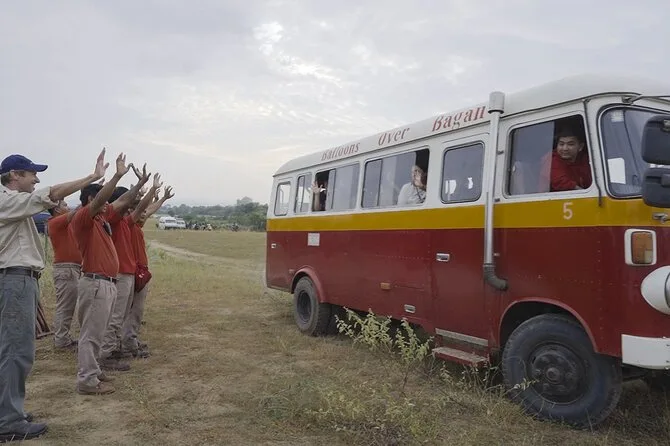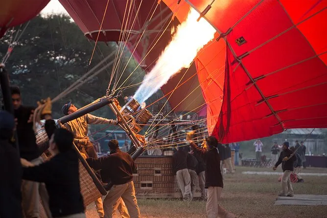 Your day includes hotel pickup and drop-off, pre-flight coffee or tea while watching the crew prepare your balloon, a guided hot air balloon ride over Bagan’s temples at sunrise, inflight photos to download later, plus champagne and a light breakfast after landing before heading back to your hotel.