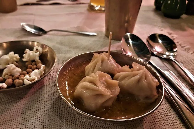 We settled onto low cushions around a wooden table, surrounded by flickering butter lamps. The first plate arrived—crispy sel roti and spicy achar—followed by momos that disappeared fast. Each course came with a quick story from our server about where it came from or how it’s made at home. While we ate, dancers in bright costumes spun through the room: Sherpa steps one moment, then Newar drums shaking the floor the next. There was even a bit where guests could join in (I tried… not my best move!). The show wrapped up around 9 PM, just as dessert—a sweet rice pudding—landed on our table. Our ride back to the hotel was quiet; everyone was full and happy.