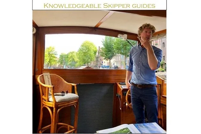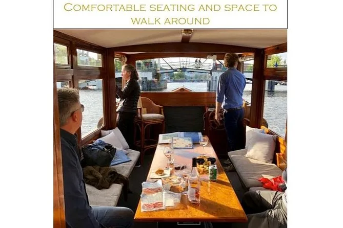 Your 90-minute Amsterdam canal cruise includes live guiding by an engaging local captain aboard a classic 1928 electric saloon boat with seating inside or out, plus locally produced Dutch drinks and snacks—blankets and heaters are always within reach if you need them.