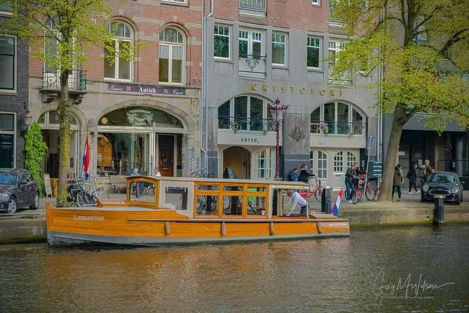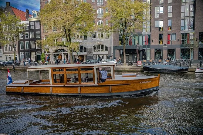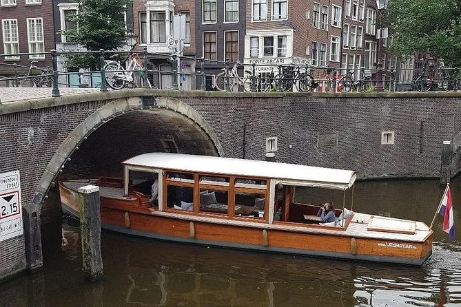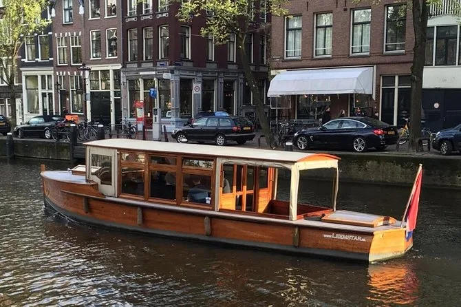 Classic Amsterdam canals by electric boat with stories drinks and city life