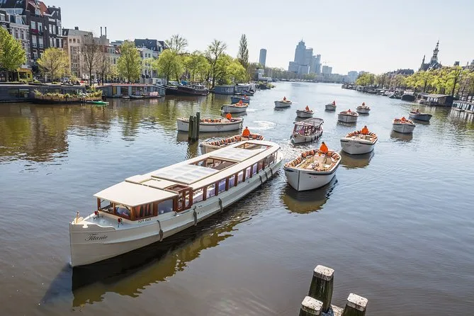 Your hour-long journey includes entry onto a classic luxury saloon boat with an experienced skipper and live English-speaking guide. If selected at booking, enjoy unlimited wine, beer or soft drinks plus two kinds of Dutch cheese served as you glide past iconic sights before returning to your starting point near central Amsterdam.