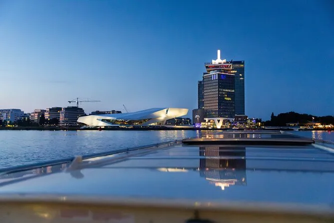 Your ticket covers a 90-minute evening sightseeing cruise through Amsterdam’s canals with an audio guide available in 20 languages. Depending on your booking option, you can upgrade for wine & cheese or snack boxes—otherwise drinks and snacks are available for purchase before boarding. Wheelchair access is possible if reserved ahead of time.