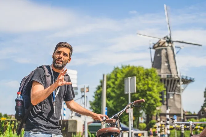 You’ll cycle through Jordaan, Vondelpark, De 9 Straatjes, Museumplein area, pass De Gooyer Windmill and Magere Brug.