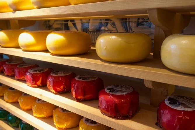 Your day includes comfortable transport from Amsterdam with pickup, entry fees to both Zaanse Schans windmill village and a working cheese farm where you’ll also get to taste fresh Gouda cheeses, live clog-making demonstration, plus Dutch fruit wine tasting before heading back late afternoon.