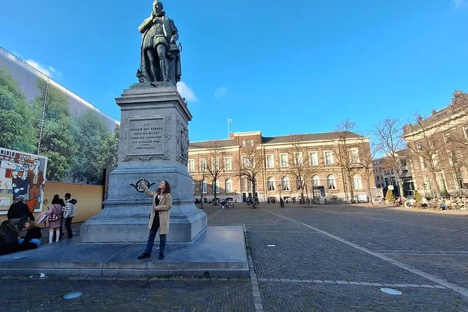 “That statue over there? He lost his head—literally,” our guide joked as we paused by the Hofvijver, just steps from the parliament buildings. I could hear the faint splash of ducks on the pond and the soft hum of bikes zipping past. We started our private walking tour of The Hague right in the middle of its political heart, where ministers sometimes hurry by in dark suits, barely glancing up from their phones.