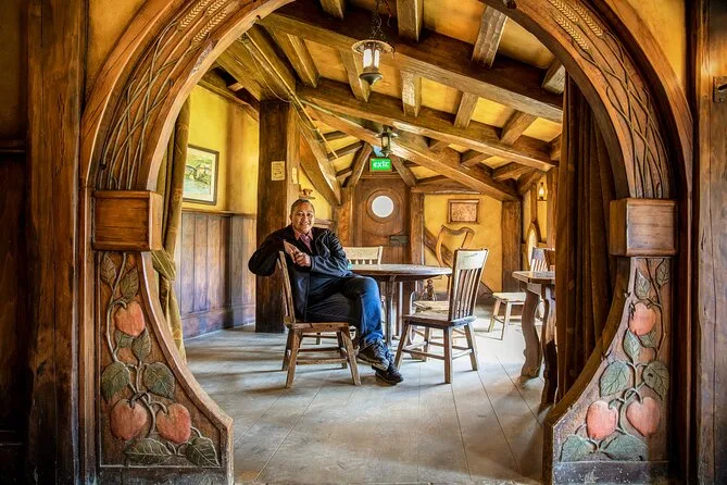 I didn’t expect to feel anything sitting inside the Green Dragon Inn but… well, it’s warm in there and smells like woodsmoke and bread. They handed us drinks (I went for ginger beer) and people just sort of sat quietly or took photos by the fire. You can look out through those round windows across the pond — I still think about that view sometimes when I’m back home staring at my laptop screen. On the ride back to Auckland most people dozed off or scrolled through their photos, except Sam who kept humming something that sounded suspiciously like “Concerning Hobbits.” It’s not a perfect day — shoes get muddy, rain sneaks under your collar — but that kind of makes it better, you know?