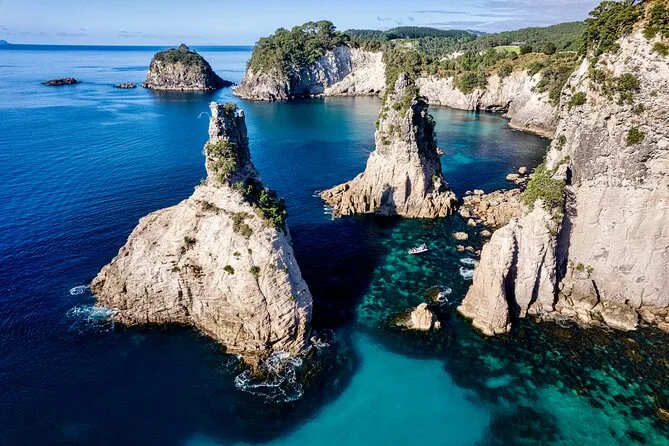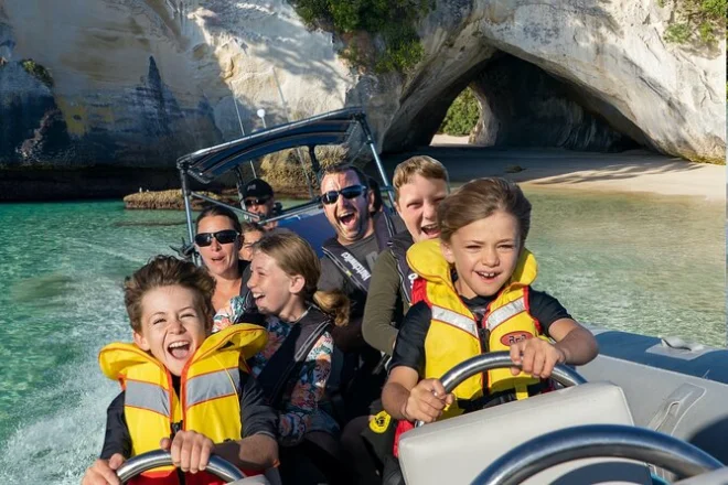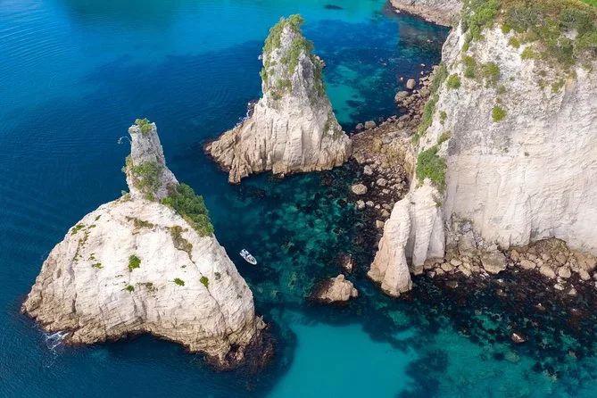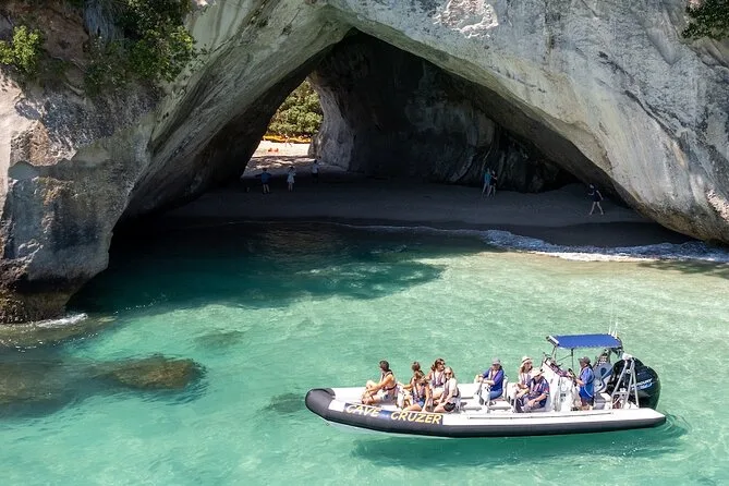 You’ll see Cathedral Cove, Shakespeare Cliff, Lonely Bay, Cooks Beach Blowhole, Hahei Beach headland (former Maori Pa site), Hot Water Beach (in distance), Ice Cave, Big Bay Blowhole (if possible), Orua Cave, Whale Cave, Hole in the Rock and more.