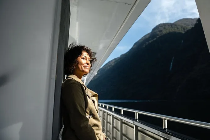 Your day includes air-conditioned coach pickup from Te Anau to Manapouri, a catamaran cruise across Lake Manapouri, live commentary throughout by local guides who know every twist of Fiordland’s landscape, plus your full Doubtful Sound wilderness cruise before returning late afternoon.