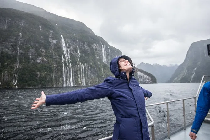 The overnight cruise felt a bit like stepping off the grid — no bars on my phone, just rain-soaked cliffs and those dark green forests sliding past. At one point we anchored in a little cove, and Pete handed out kayaks for anyone who wanted. I nearly tipped myself in (twice) but paddling under those dripping ferns made me feel tiny in the best way. Later, back on board, dinner was simple but warm — I think it was lamb stew? — and everyone swapped stories about where they were from. Someone from Wellington kept mispronouncing “fiord” and Li laughed when I tried to say it in Mandarin — probably butchered it.