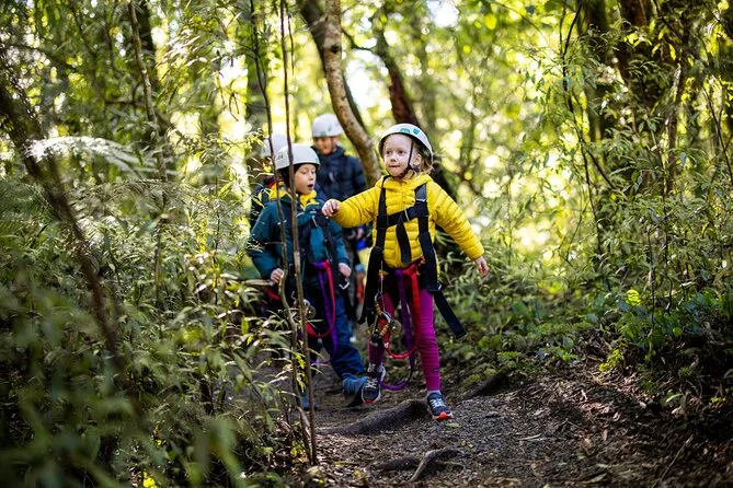 The experience includes six separate ziplines through native forest canopy.