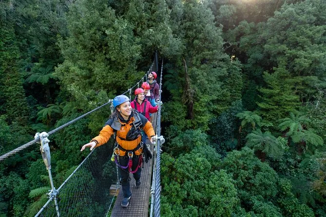 You’ll fly through ancient Rotorua forest on six ziplines—including a 400m tandem run—cross suspended bridges, climb spiral stairs around thousand-year-old trees, and walk a volcanic cliff ledge with local guides who keep things safe and genuinely fun. Expect rare birds, fresh air, laughter (sometimes nervous), and memories you’ll replay long after landing back on solid ground.