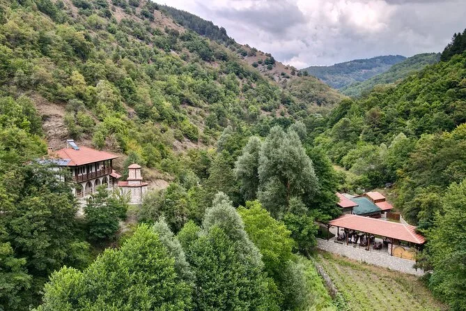 Your day includes hotel pickup in Skopje, guided tours through both the wine cellar and monastery (if you want), tastings of five estate wines plus two brandies, bottled water to keep things balanced, a generous cheese and charcuterie platter sourced locally, and an easy ride back to your door when it’s all done.
