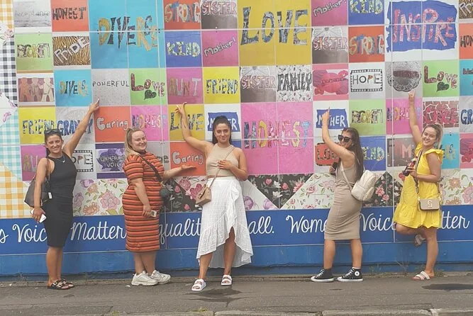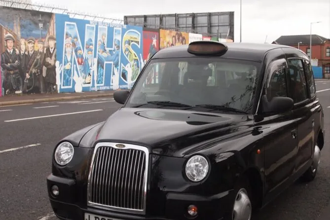 Your day includes pickup within central Belfast by an iconic black taxi driven by an accredited local guide; stops at Divis Tower, Shankill Road murals, Falls Road murals including Sinn Fein’s building with its Hunger Strike Memorial; time to sign your name at the Peace Wall; plus full accessibility for wheelchairs or strollers if needed.