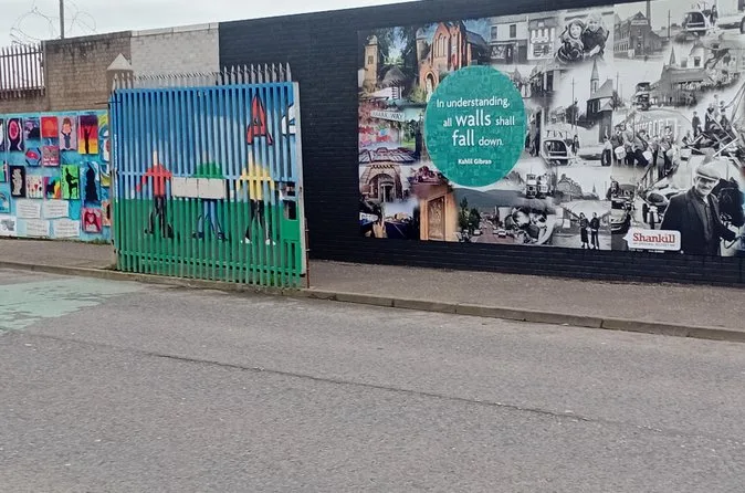 Your day includes transport by black taxi cab around Belfast’s historic neighborhoods with a fully certified local guide who grew up during The Troubles; there are plenty of photo stops at murals along Falls Road and Shankill Road plus time to write your own message on the Peace Wall before returning to your starting point.