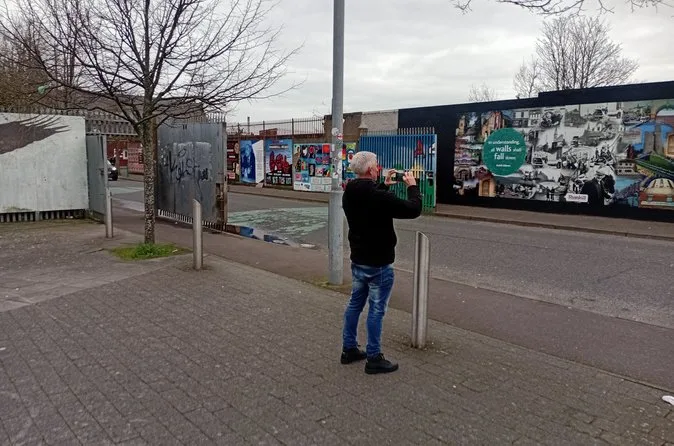 The duration isn’t specified exactly but covers key sites like Falls Road, Shankill Road, and the Peace Wall with time for photos and questions.